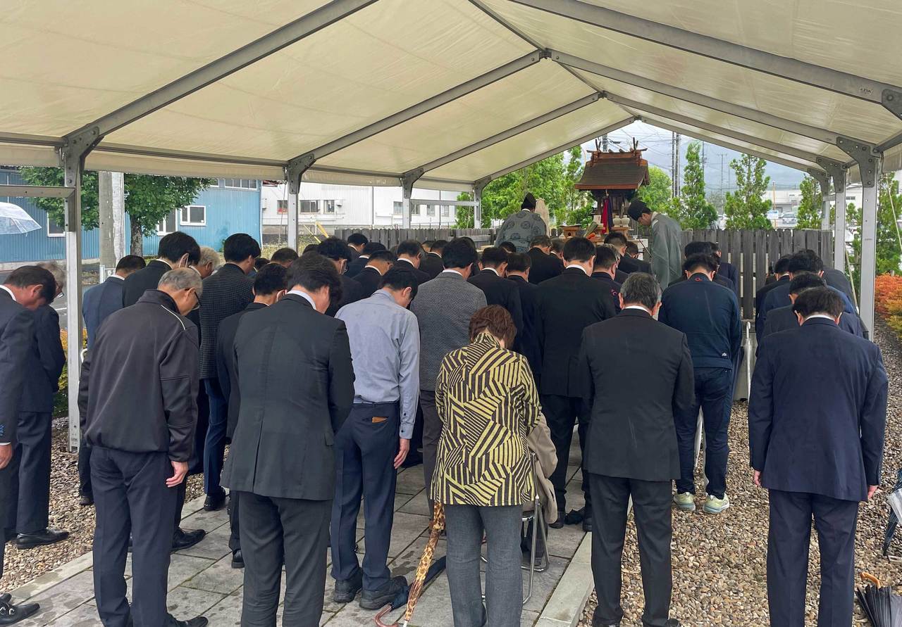 当日はあいにくの雨模様であったが、高橋矢巾町長、井上商工中金盛岡支店長ほか金融機関の代表、流通センター内の企業や団体・住民代表など約50名の参列により、流通センター関係者の商売繁盛・家内安全を祈願し神事が執り行われた。