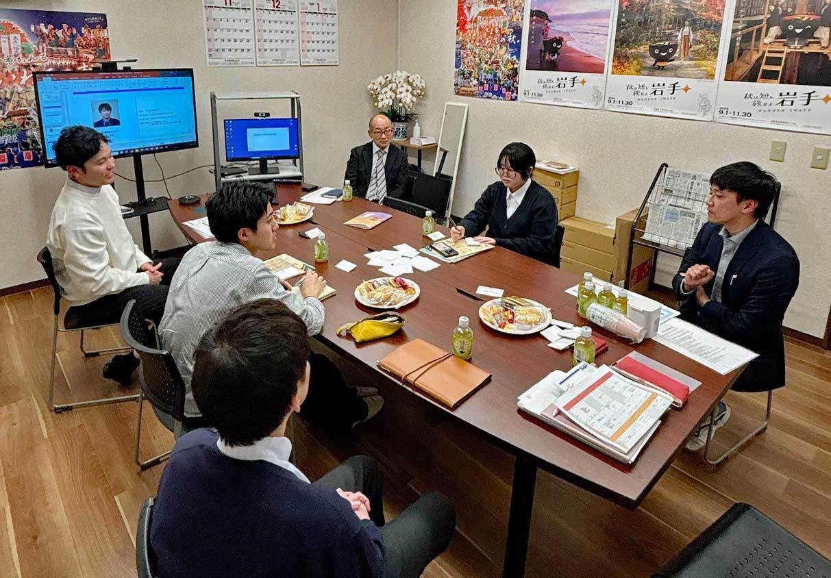 5月11日(火)午前11時、1日ハローワーク盛岡所長の任命を受けた盛岡市立高校3年の髙橋翔也さん、楢木亜弥さんが谷藤裕明盛岡市長、高橋達也盛岡広域振興局長、高屋敷敏彦盛岡公共職業安定所長と共に当組合を訪れ、藤村理事長に令和4年3月卒業予定者の求人確保のための雇用要請書を手交した。