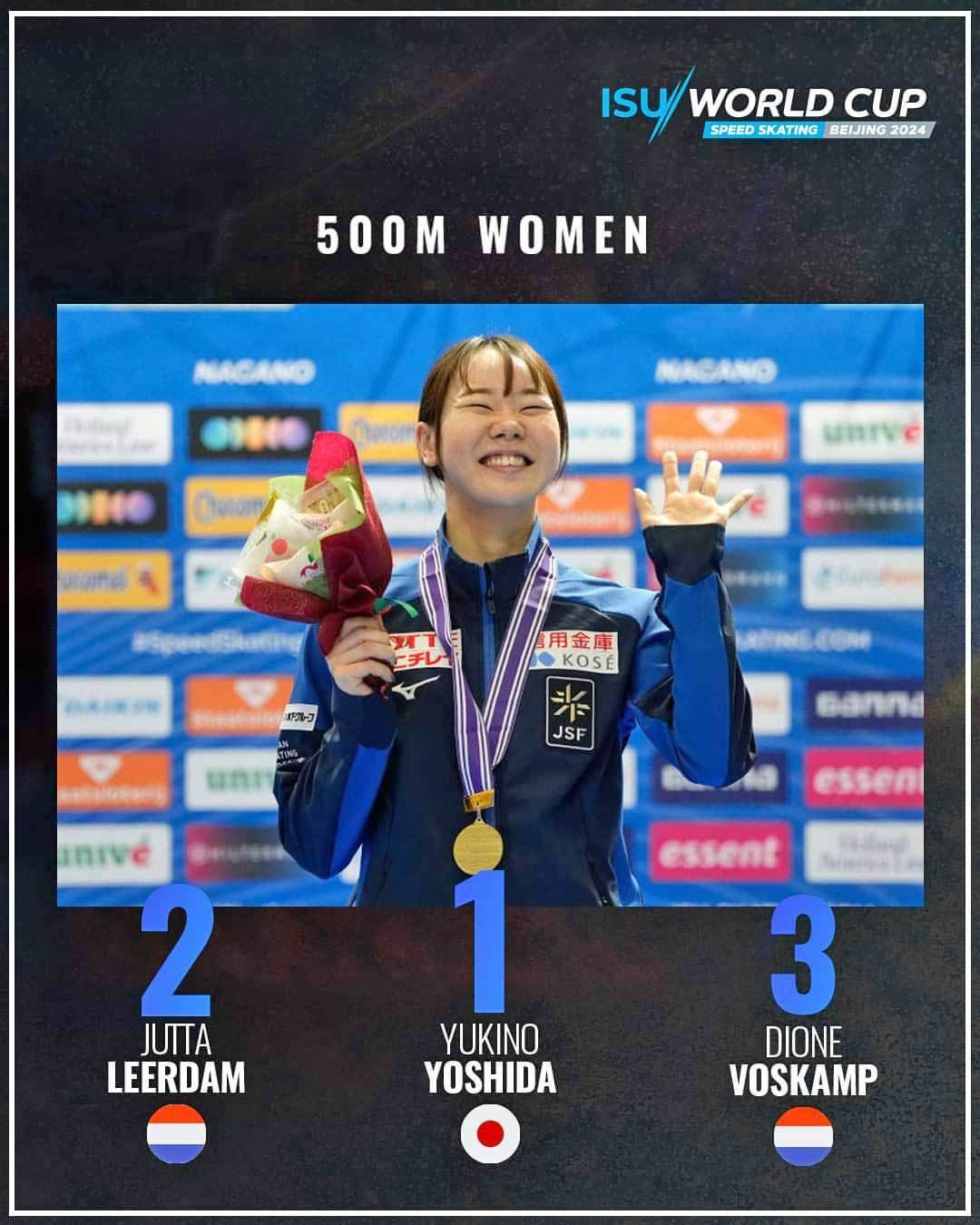 当組合第5部会所属で㈱寿広スピードスケートの吉田雪乃選手が12月14日に開催されたワールドカップ第4戦500メートルで優勝し、2026ミラノ・コルティナ冬季オリンピックへの出場を確実にした。